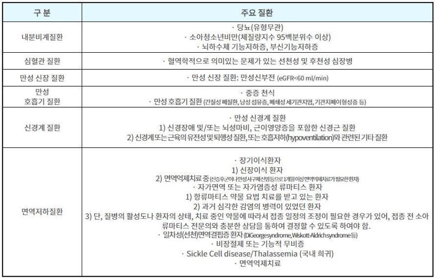 사진: 소아청소년의 기저질환 범위(자료=질병관리청).