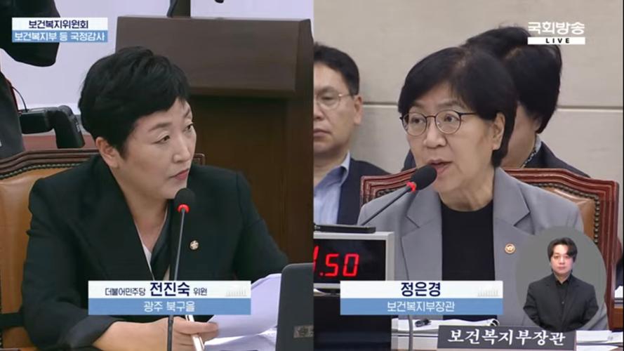 (왼쪽부터) 더불어민주당 전진숙 의원, 보건복지부 정은경 장관. 사진=국회방송