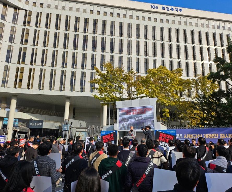 사진은 지난 11일 대한의사협회가 보건복지부 앞에서 진행한 검체검사 위·수탁 제도 개편 반대 궐기대회 모습.