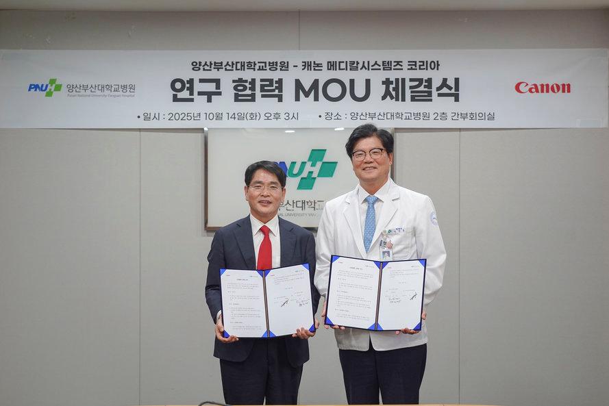 양산부산대병원은 지난 14일 교수연구행정동 2층 회의실에서 캐논 메디칼시스템즈 코리아와 CT 기반 임상 연구 및 영상진단 분야 발전을 위한 업무협약(MOU)을 체결했다고 밝혔다.