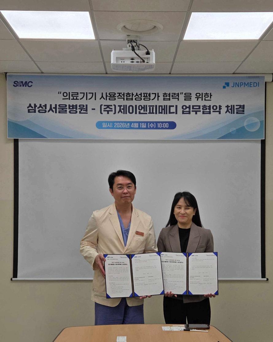 AI 플랫폼 기반 신약 및 혁신 의료기기 개발 컨설팅 기업 제이앤피메디가 삼성서울병원과 의료기기 사용적합성 엔지니어링 기술지원 및 사용적합성 평가 분야 협력을 위한 업무협약을 체결했다고 24일 밝혔다.