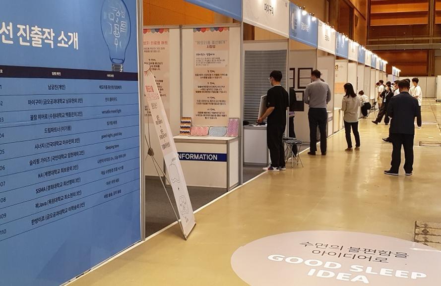꿀잠 아이디어존은 차세대 수면 산업에 진출할 아이디어 공모전 본선에 진출한 10개 팀이 참가해 다양한 수면 관련 신제품과 아이디어 등을 공유했다.