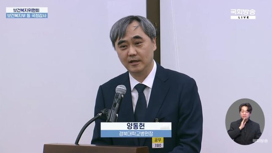 양동헌 경북대병원장이 15일 국회 보건복지위원회 보건복지부 국정감사에 참석해 발언하고 있다. 사진=국회방송 중계 영상 갈무리