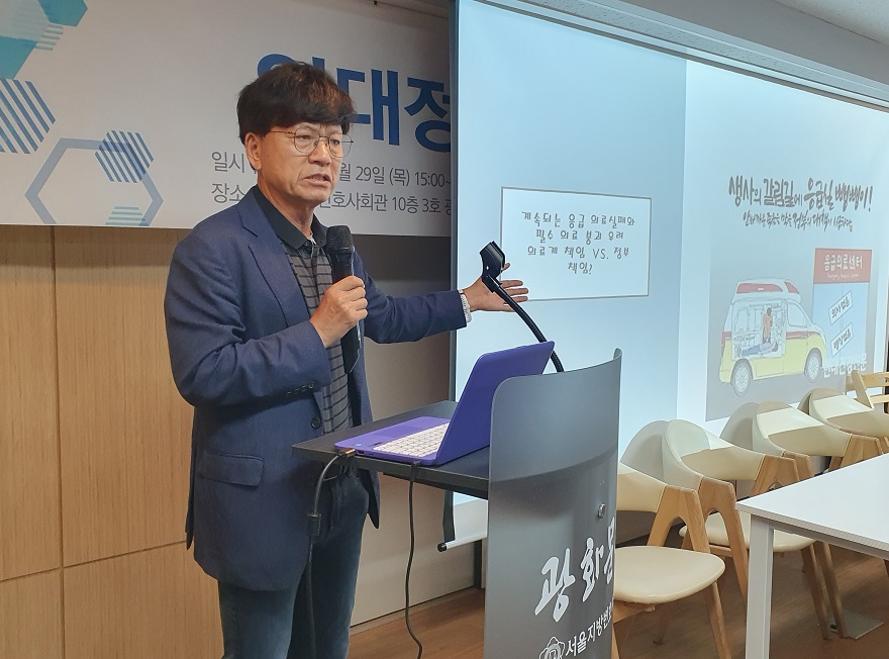 그는 "예전엔 대학병원이라고 해도 대학부속병원이라는 이름이 붙었는데 아산과 삼성을 중심으로 기업마인드가 들어오면서 부속병원 이름이 빠졌다"며 "전문적인 의료경영자가 붙고 5개 대형병원을 중심으로 의료자원과 환자들을 싹쓸이하기 시작했다"고 지적했다.