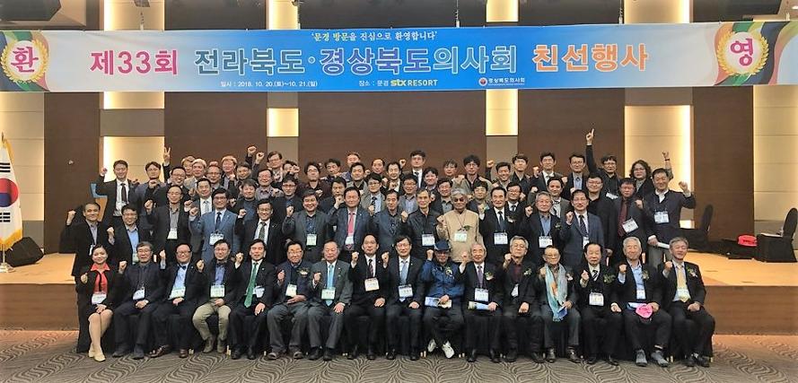 전라북도의사회와 경상북도의사회는 20~21일 이틀에 걸쳐 경북 문경 STX 리조트에서 100여명의 의사 회원들이 참석한 가운데 제33회 친선교류 행사를 열었다고 밝혔다. 올해로 벌써 33년째 열리는 행사는 경북의사회 주관으로 이뤄졌다.
