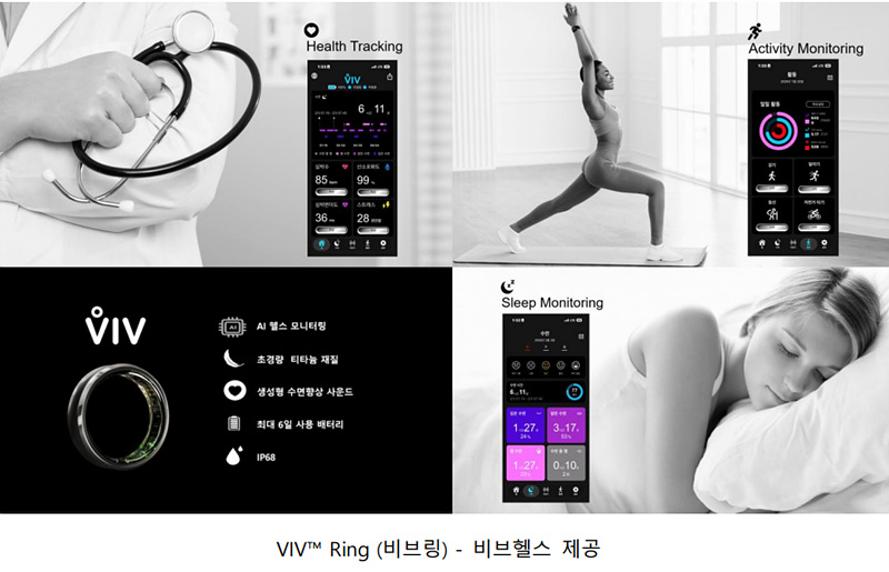 비브헬스는 웨어러블 하드웨어이자 스마트링 기기로서는 국내 최초로 식약처 등록을 완료했다. 비브헬스의 비브링(VIV Ring)은 심박수, 혈중 산소포화도, 걸음 수 등 생체신호와 활동 데이터를 스마트링 형태로 측정·분석하고, 생활습관 기록을 기반으로 건강관리 정보를 제공하는 기능을 갖춘 제품이다.