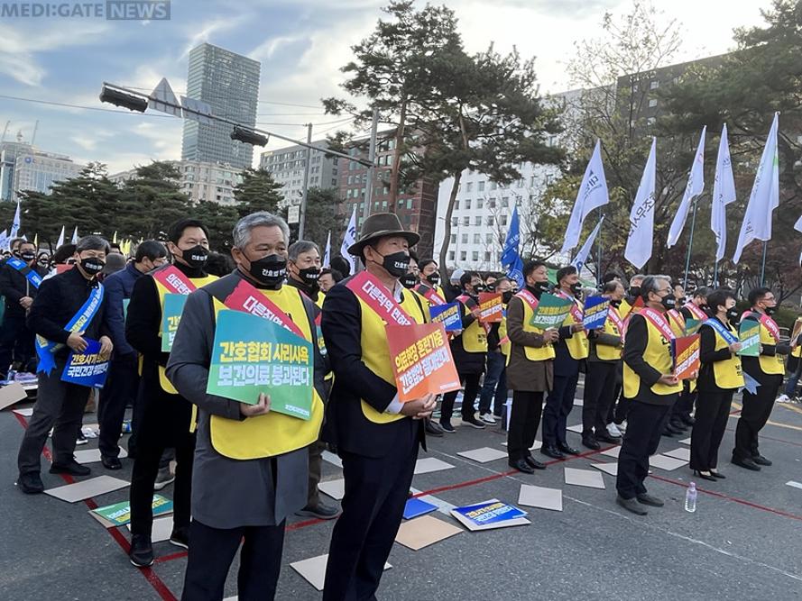 간호법 저지 총궐기대회에 참석한 13개 단체는 대한의사협회, 대한간호조무사협회, 대한방사선사협회, 대한병원협회, 대한보건의료정보관리사협회, 대한응급구조사협회, 대한임상병리사협회, 대한의사협회, 대한치과의사협회, 한국노인복지중앙회, 한국노인장기요양기관협회, 한국요양보호사중앙회, 한국재가노인복지협회, 한국재가장기요양기관협회 등으로 총 회원수는 400만명이다.