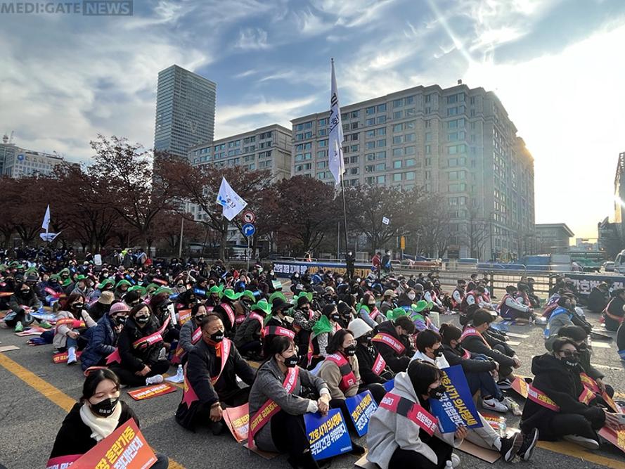 대한의사협회를 비롯한 13개 보건복지의료연대가 간호법 제정에 반대하기 위해 27일 오후 2시 국회의사당대로 앞에서 '간호법 제정 저지를 위한 400만 보건복지의료연대 총궐기대회'를 진행했다. 이날 주최측은 6만여명이 모인 것으로 추산했다.