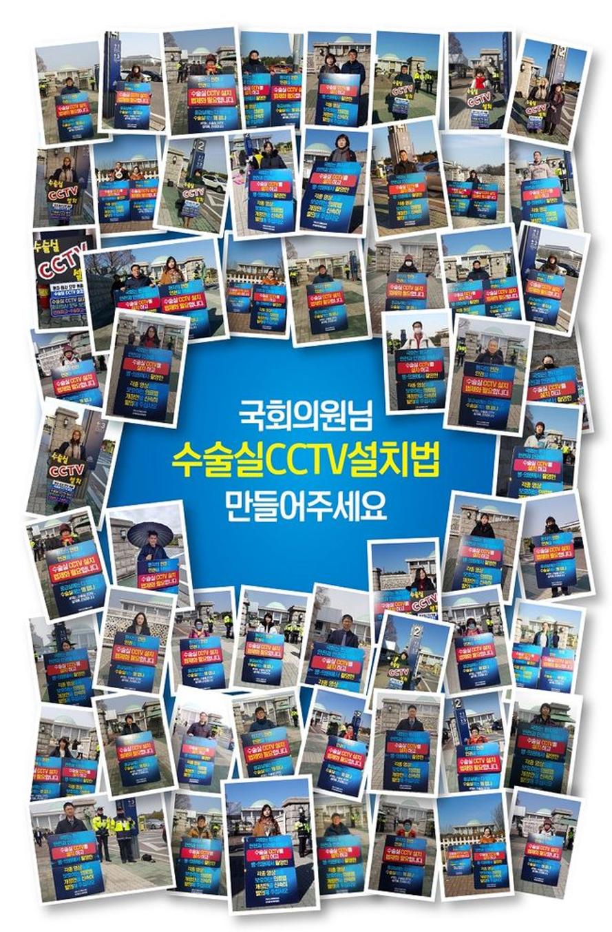 환자단체는 "이러한 이유로 의료사고 피해자와 환자단체는 지난해 11월22일부터 올해 4월18일까지 무자격자 대리수술 근절과 수술실 안전·인권 보호를 위해 수술실에 CCTV를 설치·운영하는 의료법 개정안을 국회에서 발의해 달라며 국회 앞에서 100일 동안 릴레이 1인시위를 진행했다. 이에 더불어민주당 안규백 국회의원이 올해 5월14일 수술실 CCTV 설치·운영과 촬영한 영상 보호를 내용으로 하는 의료법 개정안을 대표발의 했다. 그러나 공동 발의자 10명 중 5명이 하루 만에 철회해 법안이 폐기되는 수난을 당했다. 안규백 국회의원이 법안 폐기 6일 만에 공동발의자 15명의 서명을 받아 다시 대표 발의하는 우여곡절을 겼었다"고 밝혔다.