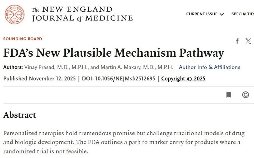 뉴잉글랜드저널오브메디슨(NEJM)에 게재된 기고문에서 두 사람이 맞춤형 유전자 편집 치료법이 개발되고 승인되는 방식에 큰 변화를 촉발할 수 있는 새로운 규제 경로를 소개했다.