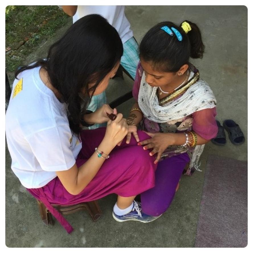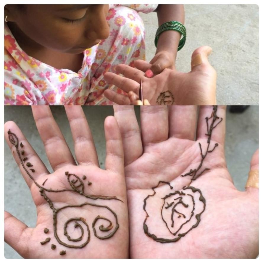 그림을 잘 그려 아이들이 헤나를 그려달라며 줄을 서서 하루종일 이 친구는 헤나를 그려 주었습니다.