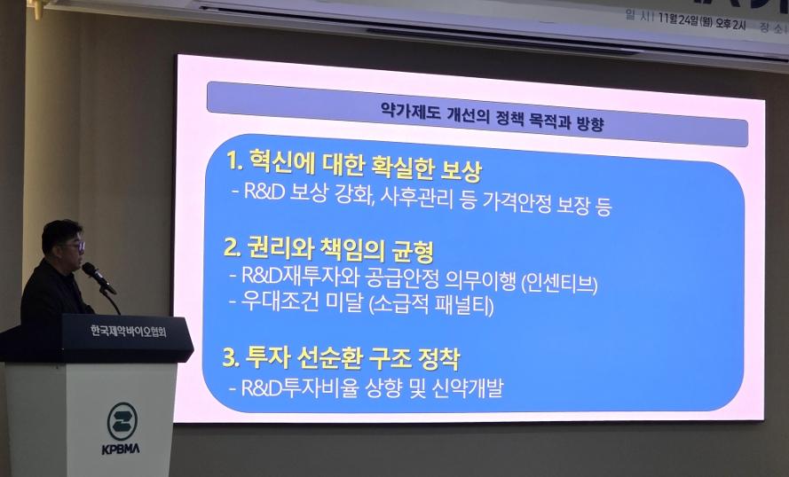 그는 "이번 약가제도 개편 방향은 혁신을 강화하고 활용이 확대되면 안정적인 수익을 유지할 수 있도록 사후관리 체계를 정비하는 것"이라고 밝혔다. 이어 공급 안정과 품절 대응을 위해 성분명 처방 등 대체조제 활성화를 추진할 방침이라고 언급했다.