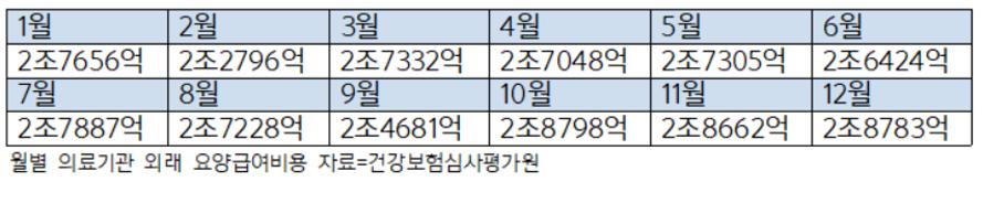 하지만 실제로 요양급여비용은 8월이 아니라 9월이 더 저조한 것으로 나타났다. 9월의 외래 요양급여비용은 8월(2조7228억원) 보다 9.4% 줄어든 2조4681억원이었다. 지난해 가장 급여비가 적은 달은 2월(2조2796억원) 다음으로 9월이었다. 추석연휴가 있고 아직 환절기가 시작되지 않아서다. 10월부터 환절기가 지나야 요양급여비용이 회복세로 돌아선다.