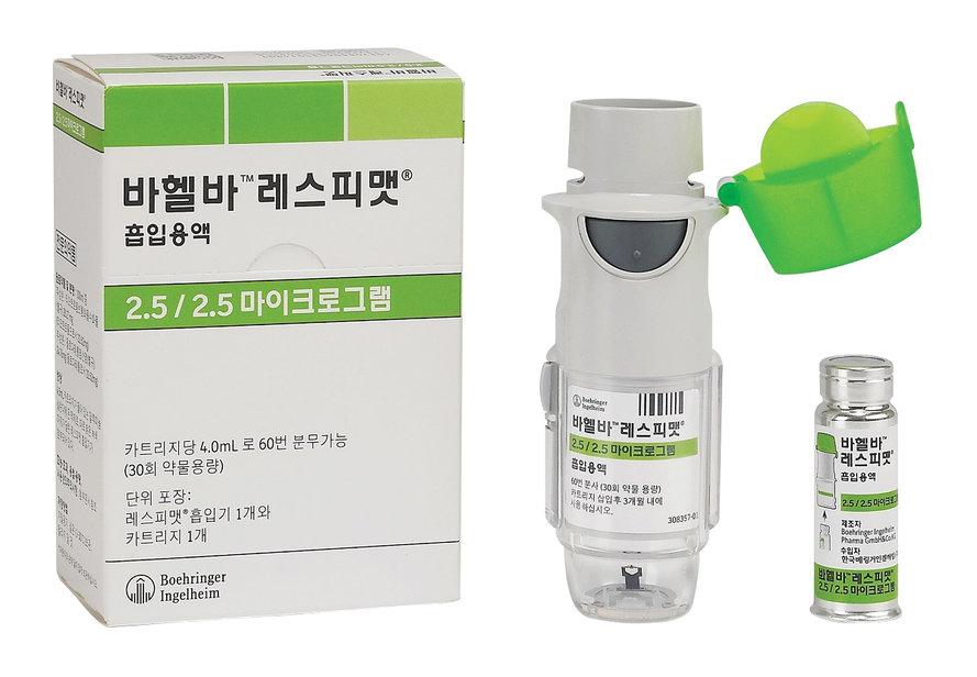 베링거인겔하임이 개발한 ‘스피리바 레스피맷’은 티오트로퓸(Tiotropium) 성분의 흡입형 COPD 치료제로, 2008년 국내 허가를 획득했다.  ‘바헬바 레스피맷’은 티오트로퓸과 올로다테롤(Olodaterol) 복합 성분으로, 2015년 국내 허가를 받았으며 스피리바 레스피맷보다 중등도 및 중증 COPD 환자의 악화 발생률을 감소시키는 효과를 보였다.
