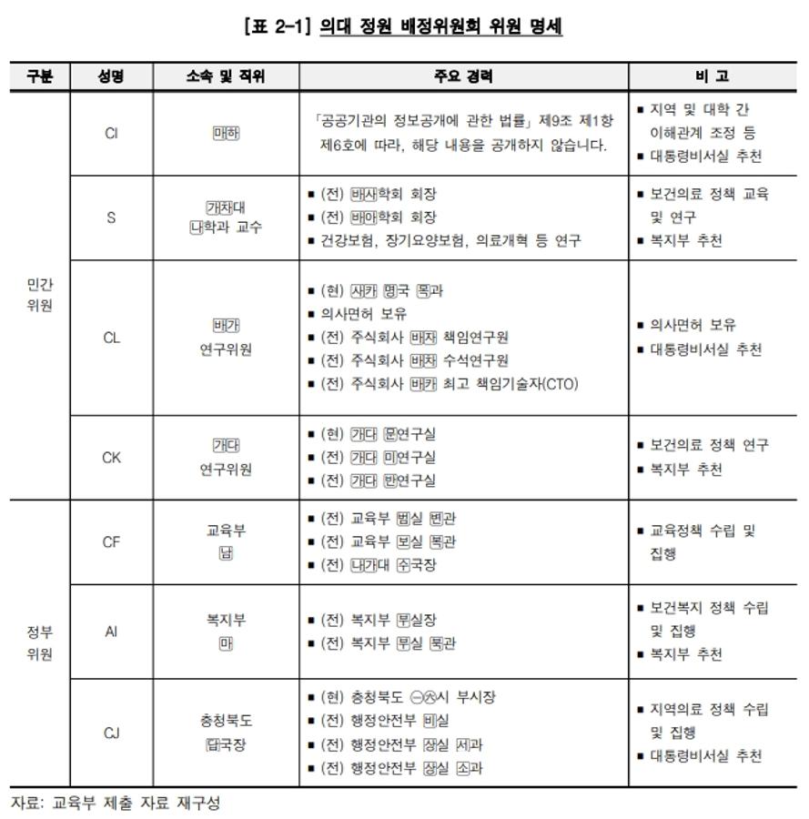 [의대정원 증원 감사] 배정위에 전문가인 의대 교수 전무…일부 위원 현장점검 요청에도 교육부는 '일축'