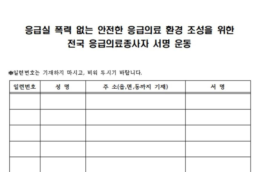 안전한 응급의료 환경 조성을 위해 응급의료 종사자와 국민들 1만여명이 '폭력 없는 응급실 서명운동'에 동참한 것으로 나타났다.
