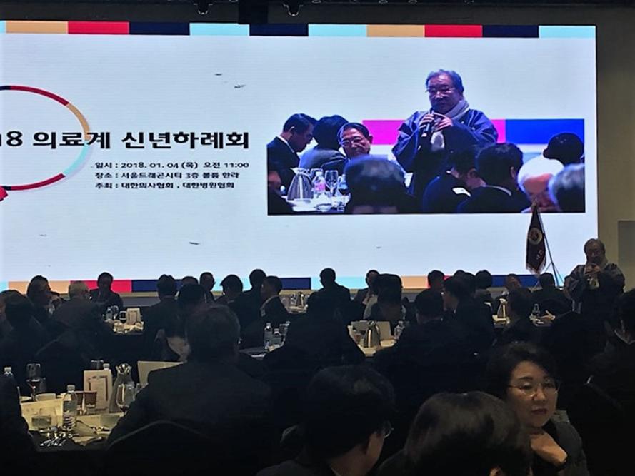 의협 김재정 명예회장(31대, 33대)은 4일 서울 용산구 서울드래곤시티에서 열린 의료계 신년하례회에 참석해 투쟁의 끈을 놓지 말 것을 당부했다. 김 명예회장은 “정부는 (의료계의)논리적인 이야기는 절대 듣지 않는다”라며 “대화를 하면서 무조건 투쟁을 해야 한다”고 했다.