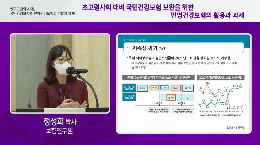 보험연구원 정성희 박사 "실손 손해율 급증으로 공급 위축...비급여 관리 시급"