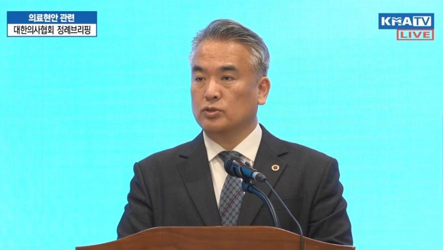 대한의사협회 김성근 대변인이 18일 의협회관에서 정례 브리핑을 진행하고 있다. 사진=의협 유튜브 중계 영상 갈무리