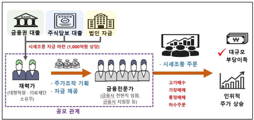 현직 종합병원 이사장과 경기 성남시 소재 대형학원 운영자는 자금을 조달하고, 금융전문가는 이를 활용해 장기간 조직적으로 시세를 조종한 것으로 알려졌다.