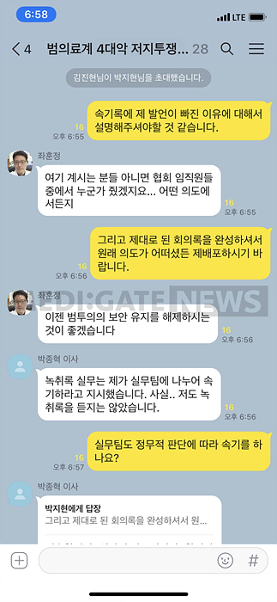 대전협 박지현 회장은 범투위 단톡방에서 의협이 대전협과 의대협에 제대로 된 일정 공유조차 없었다고 지적했다.