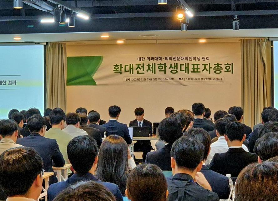 의대협 설문 결과, 의대생들은 집단 휴학 등 단체행동 대신 협상과 여론 형성 중심 대응을 선호하는 것으로 확인됐다. 사진은 지난 2024년 확대전체학생대표자 총회 모습.