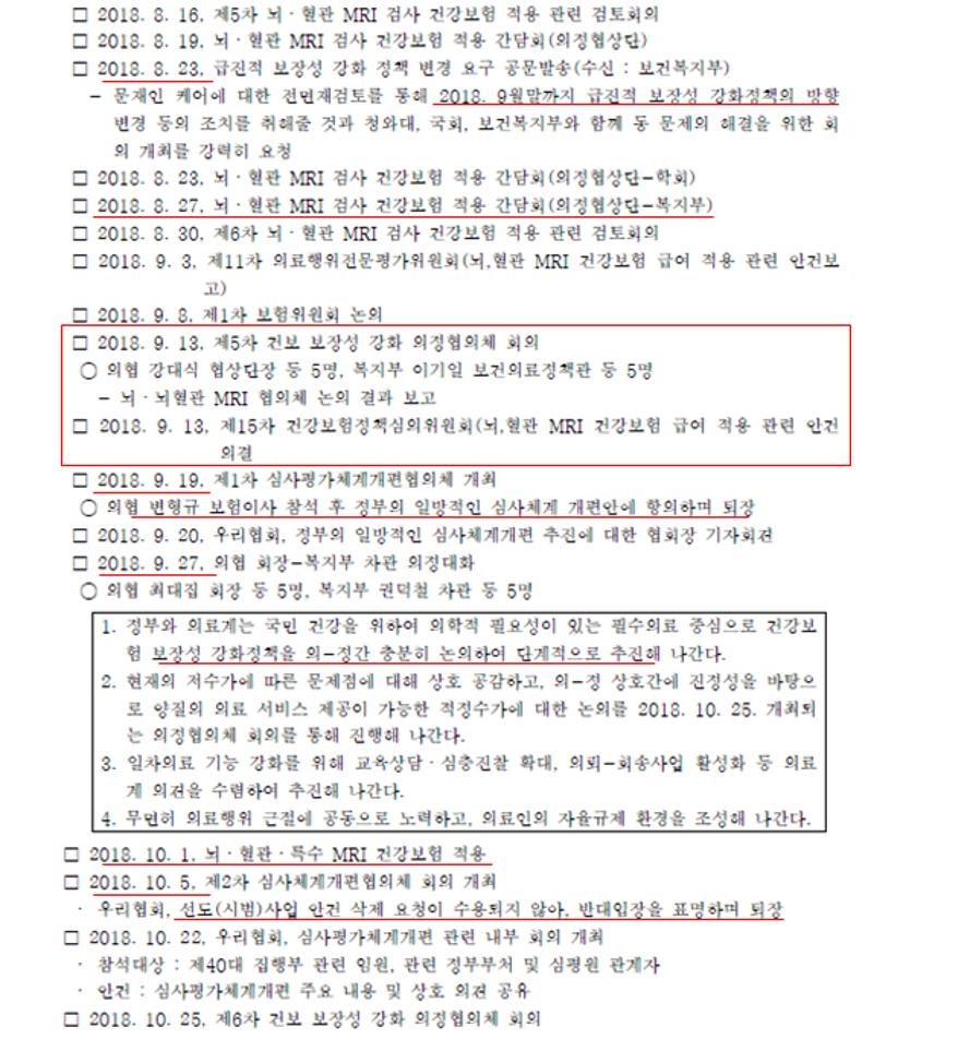 강 대표는 “의협은 중단 대응 결과 보고를 통해 보장성 강화의 '전면' 급여화를 '단계적' 급여화로 바꿨다고 했다. 필수의료영역 우선순위, 단계적 집행으로 접근방향 선회, 기준외 비급여 존치 등의 성과를 냈다며 본인들이 만들어서 보고했다”라고 했다.