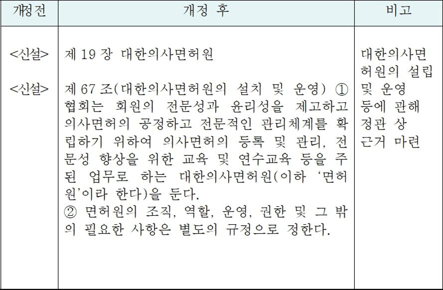 대한의사면허원 설립을 위한 의협 정관 개정 안건.