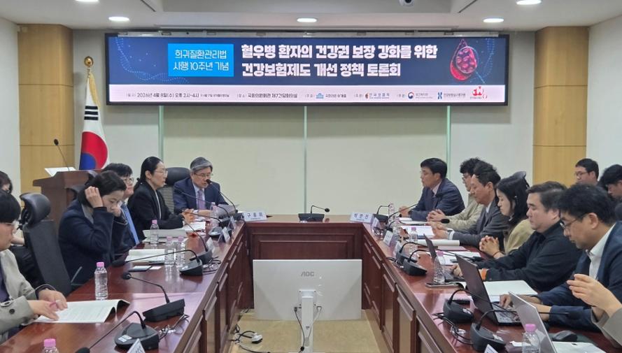 8일 국회에서 '혈우병 환자 건강권 보장을 위한 건강보험제도 개선 정책 토론회'가 개최됐다.