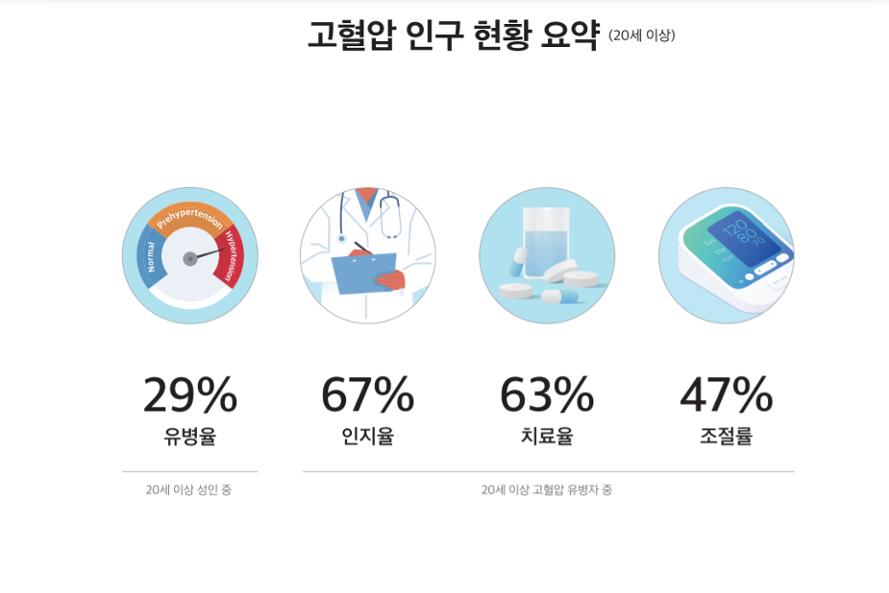 기존 고혈압에 대한 통계가 대부분 30세 이상 인구만을 대상으로 했으나 이번 팩트시트에서는 분석 대상을 20세 이상으로 확대하고 20·30대의 고혈압 관리 현황에 대한 섹션을 추가했다.