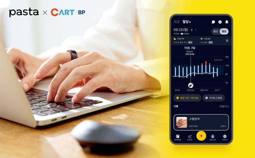 반지형 웨어러블 의료기기인 ‘카트 비피’를 착용하면 매 시간 측정되는 혈압 데이터를 ‘파스타’ 앱에서 확인할 수 있다. 매번 팔을 압박해 혈압을 측정해야 하는 커프형 혈압계를 이용하지 않아도, 일상생활은 물론 수면 중에도 불편함 없이 혈압 측정 및 확인이 가능하다. 특히 이를 통해 그간 파악하기 어려웠던 ‘야간 고혈압’이나 ‘혈압 변동성’도 손쉽게 확인하고 관리할 수 있게 됐다.