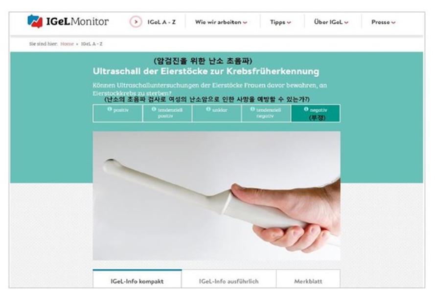 독일은 의료서비스 일환으로 홈페이지(IGel Monitor)를 통해 각 비급여 항목에 대한 설명과 효과를 6단계로 구분해 제시한다. 지난해 9월 기준 53건의 비급여 항목에 대한 정보를 제공했다.