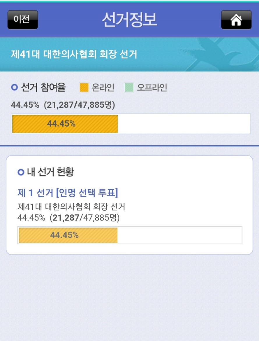 41대 의협회장 선거 둘째날 투표율, 40대 때보다 4.7%p 상승한 46.0%