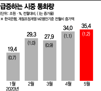 넘치는 유동성에 자산가격 급등5월 시중통화량 3053.9조..한달새 35.4조↑, 월 최대 증가폭풀린 돈은 부동산, 증시로 유입.. "추가 유동성공급 어렵게 만들어"