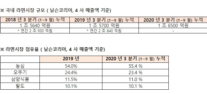 통상 날씨가 쌀쌀해지는 11월, 12월 라면 성수기를 고려한다면 연말까지 2018년 세운 최대 규모(2조930억원)를 넘어설 것으로 예상된다.