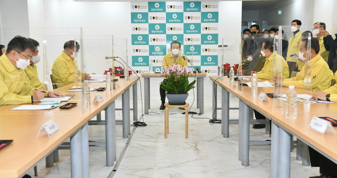 정 총리는 "강남구는 학원, 회사, 클럽·주점 등이 밀집해서 유동인구가 많은 곳이기 때문에 수능시험과 연말연시를 앞두고 더욱 철저한 방역이 필요하다"고 강조했다.