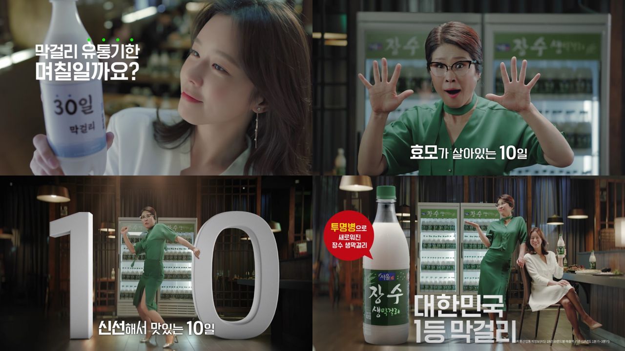 28일 관련 업계에 따르면 막걸리 업계 1위 서울장수는 배우 황석정과 경수진을 ‘장수 생막걸리’ 모델로 선정, 짧은 유통기한 ‘10일’을 내세운 유쾌한 TV 광고를 선보이며 호응을 얻고 있다.