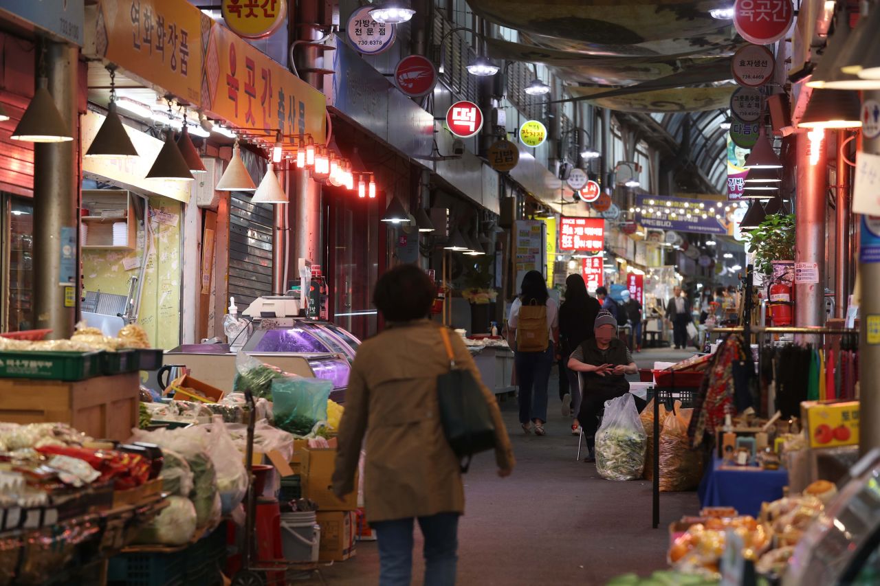 신종 코로나바이러스 감염증(코로나19) 사태에 따른 정부 긴급재난지원금 지급대상 10가구 중 9가구가 지원금을 신청해 수령을 완료했다. 행정안전부는 지난 4일부터 21일까지 지급된 긴급재난지원금 액수가 총 12조1068억원, 수령 가구는 1921만가구로 집계됐다고 22일 발표했다. 이날 서울 종로구 통인시장에서 시민들이 장을 보고 있다. /문호남 기자 munonam@