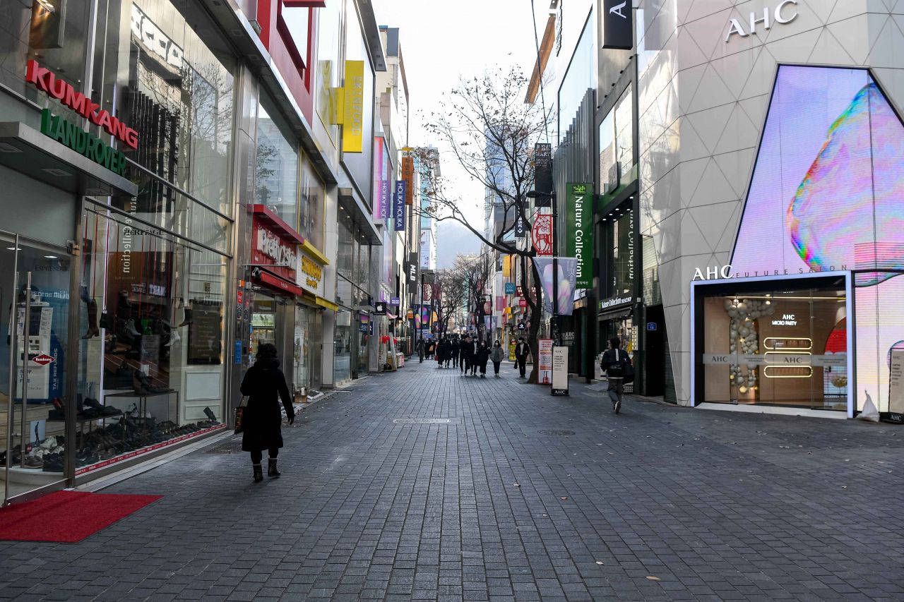 신종 코로나바이러스감염증이 '3차 대유행' 확산세를 억제하기 위해 수도권의 방역 조치가 강화되고 있는 3일 서울 중구 명동이 한산한 모습을 보이고 있다./강진형 기자aymsdream@