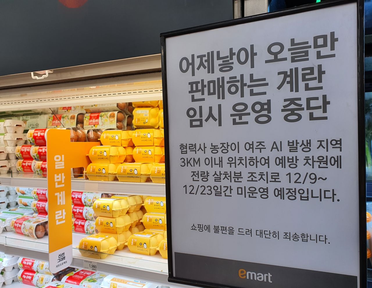 비축량 늘리고, 산지 다각화 유통업계에서는 닭고기, 달걀 수급이 어려워질 것을 대비해 선제대응에 나섰다. 대형마트 관계자는 "가공 상품을 확대하고, AI 영향이 없는 경상도 지역의 농장 확보에 나서는 등 여러 대응책을 고심하고 있다"고 설명했다. 편의점 업계 역시 평소보다 닭고기 등이 들어간 가공식품의 경우 납품 물량을 늘려 일부를 보관하는 방식으로 대응에 나섰다.