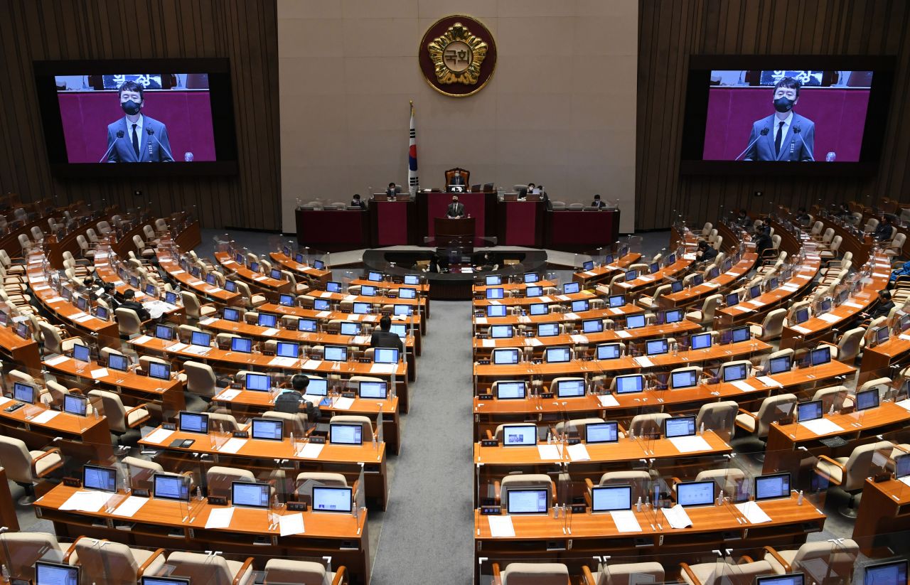 김웅 국민의힘 의원이 11일 국회에서 열린 본회의에서 국정원법 개정안에 대한 무제한 토론(필리버스터)를 하고 있다./윤동주 기자 doso7@