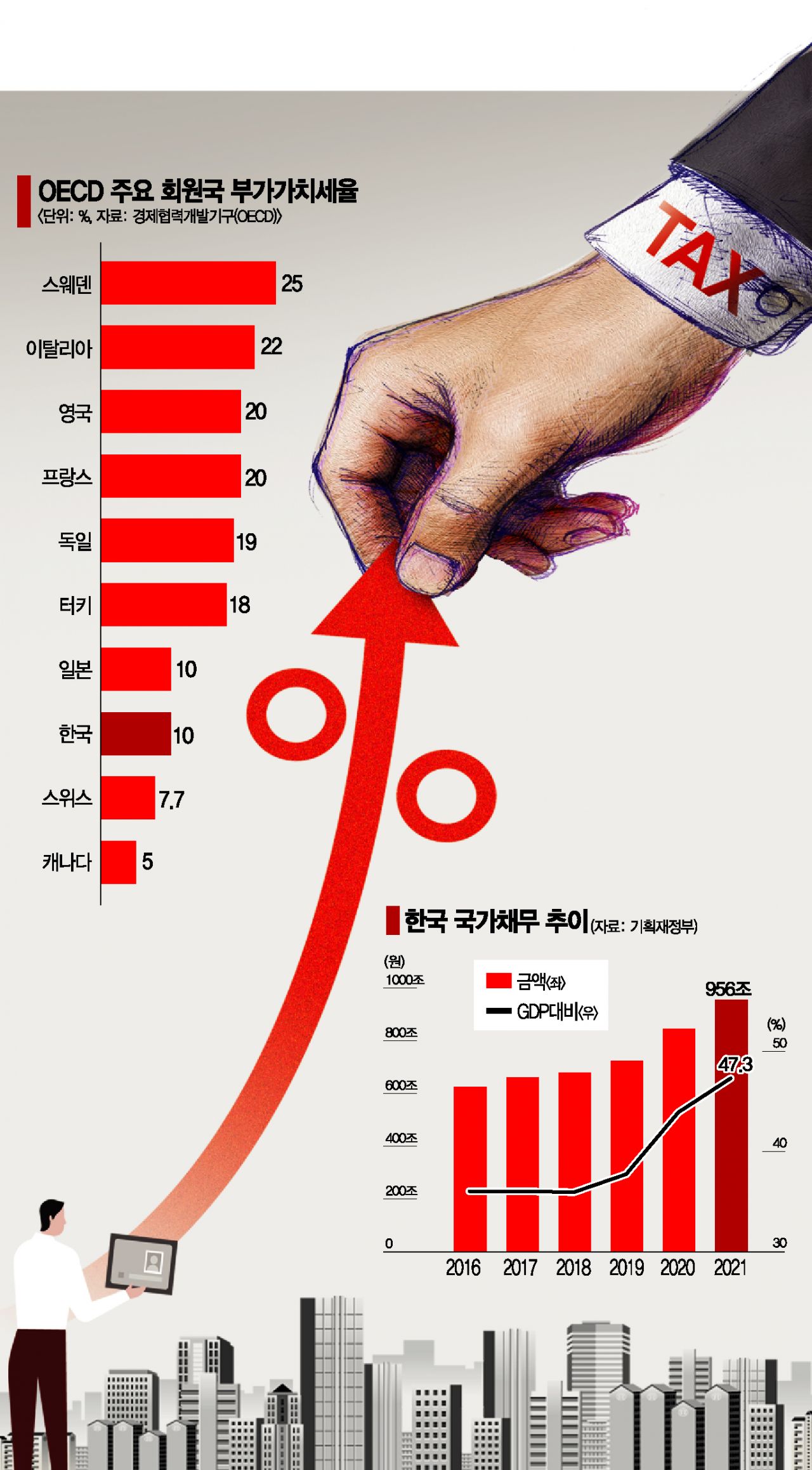 국회 입법조사처도 앞서 국정감사 이슈 분석을 통해 우리나라도 코로나19 사태의 충격에서 회복하고 장기적으로 저성장ㆍ초고령화 사회에 대비하기 위한 재원 마련 방안으로 부가세율 인상을 논의해볼 수 있다고 밝힌 바 있다.
