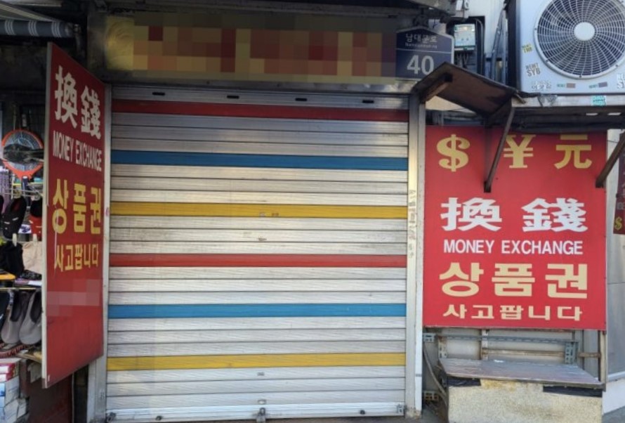 서울 중구 남창동의 남대문 시장 인근 환전소에 철문이 굳게 닫혀있다.