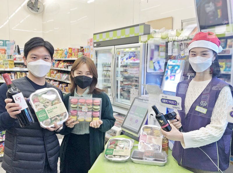 크리스마스를 앞두고 고객들이 CU선릉점에서 홈파티 관련 상품들을 구매하고 있다.
