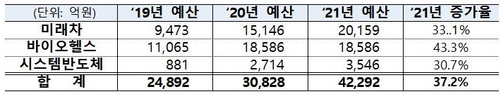 정부는 21일 정부서울청사에서 홍남기 경제부총리 겸 기획재정부 장관 주재로 '제1차 혁신성장 빅(BIG)3 추진회의'를 열고 이 같은 내용을 담은 '빅3 산업 분야별 중점 추진과제'를 논의했다. 빅3는 시스템반도체, 미래차, 바이오헬스다.