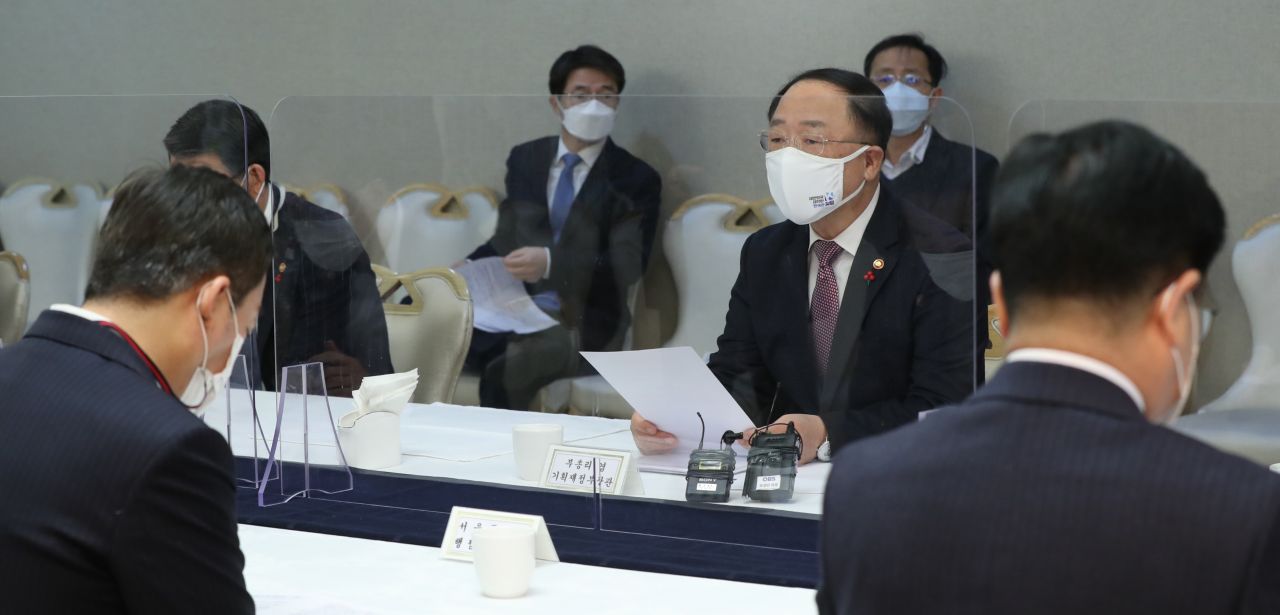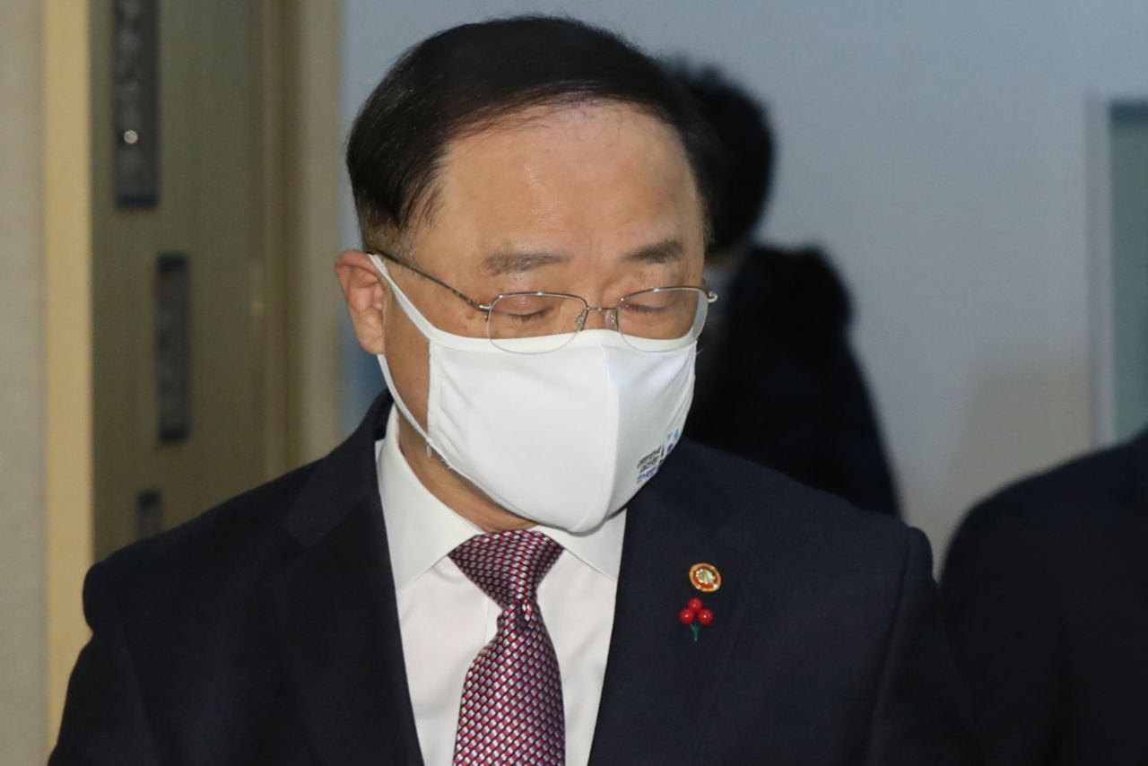 홍남기 경제부총리 겸 기획재정부 장관이 22일 서울 종로구 정부서울청사에서 열린 '제12차 부동산 시장 점검 관계장관회의'에 참석하고 있다./강진형 기자aymsdream@