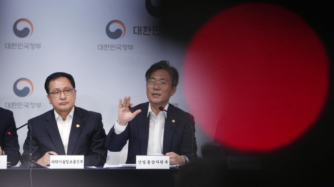 성윤모 산업통상자원부 장관이 지난해 8월5일 서울 종로구 정부서울청사에서 대외의존형 산업구조 탈피를 위한 '소재·부품·장비 경쟁력 강화대책'을 발표하는 모습./김현민 기자 kimhyun81@