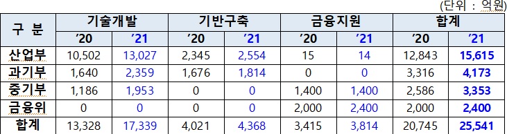 구체적으로 R&D에 1조7339억원, 실증테스트베드 등 기반구축에 4368억원, 금융지원 등에 3814억원을 각각 투입한다.
