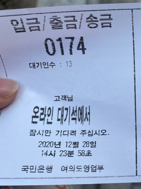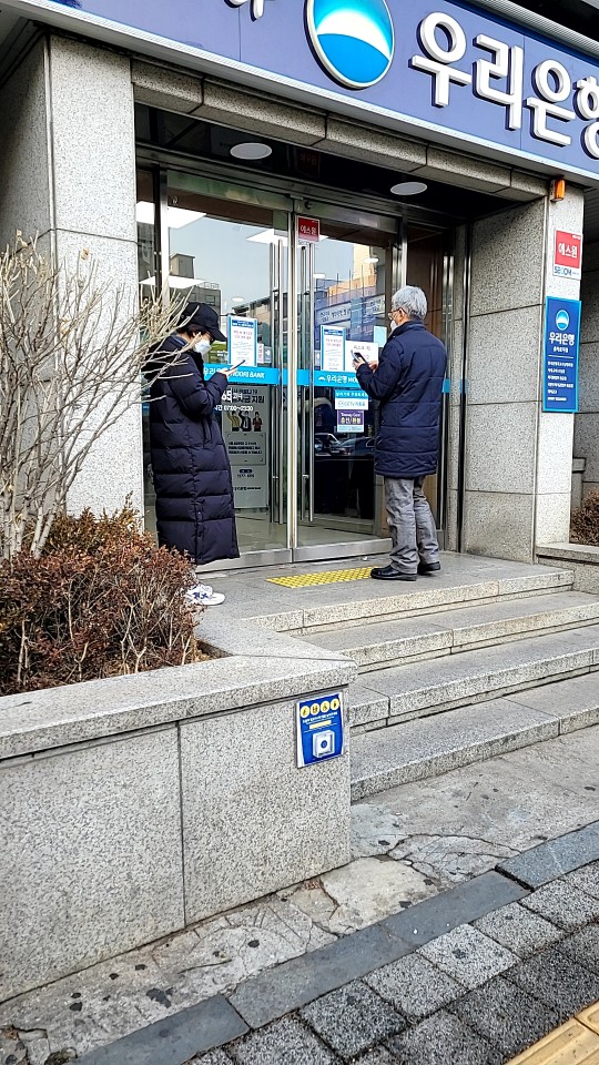 을지로 우리은행 영업점 안에는 오후 2시가 넘어가자 순식간에 사람이 몰려 대기인원만 22명에 달했다. 일부 고객들은 신종 코로나바이러스감염증(코로나19) 상황에 사람이 몰리는 것을 의식해 번호표를 뽑고 아예 문 밖에서 대기하기도 했다. 비슷한 시각 여의도 신한은행 영업점 안에도 끊임없이 몰려드는 사람들 때문에 실내 인원 수는 20명에 달했다. 여기저기 도움을 요청하는 고객들 때문에 문 앞에서 체온을 재고 인원 수를 제한해야 하는 직원은 자리를 비우기 일쑤였고, 이로인해 일부 고객들은 체온측정 조차 하지 못하고 실내로 들어왔다.
