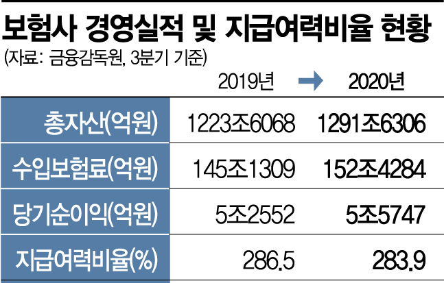 [아시아경제 오현길 기자] 올해 보험사들은 신종 코로나바이러스감염증(코로나19) 위기 속에서도 수익성과 재무건전성을 확보하면서 반사이익을 누렸다.